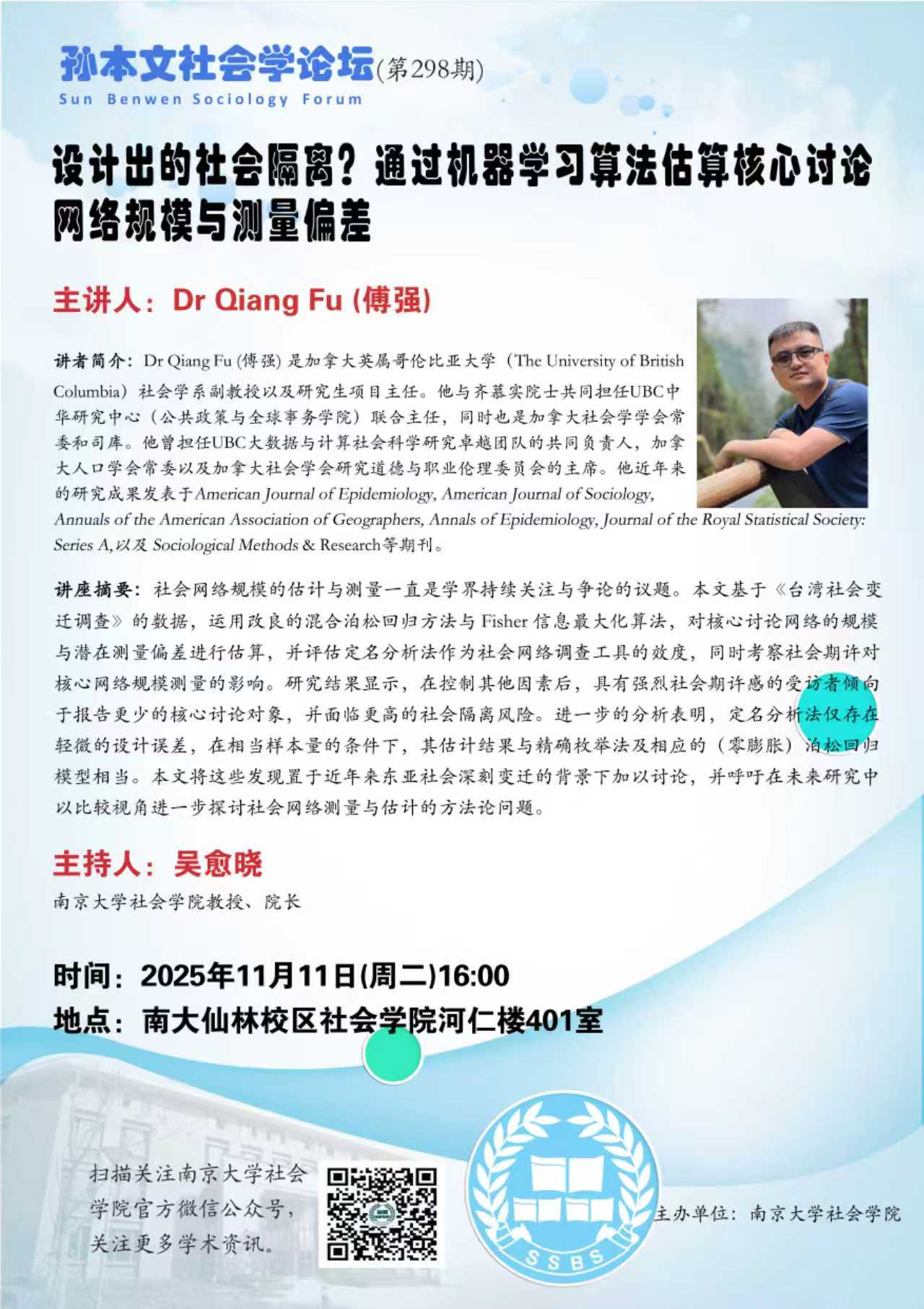 讲座 | 孙本文社会学论坛(第298期)2025.11 -