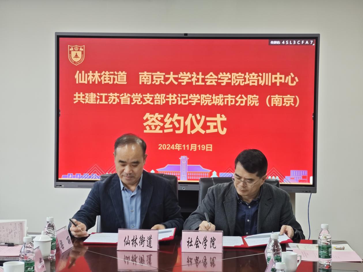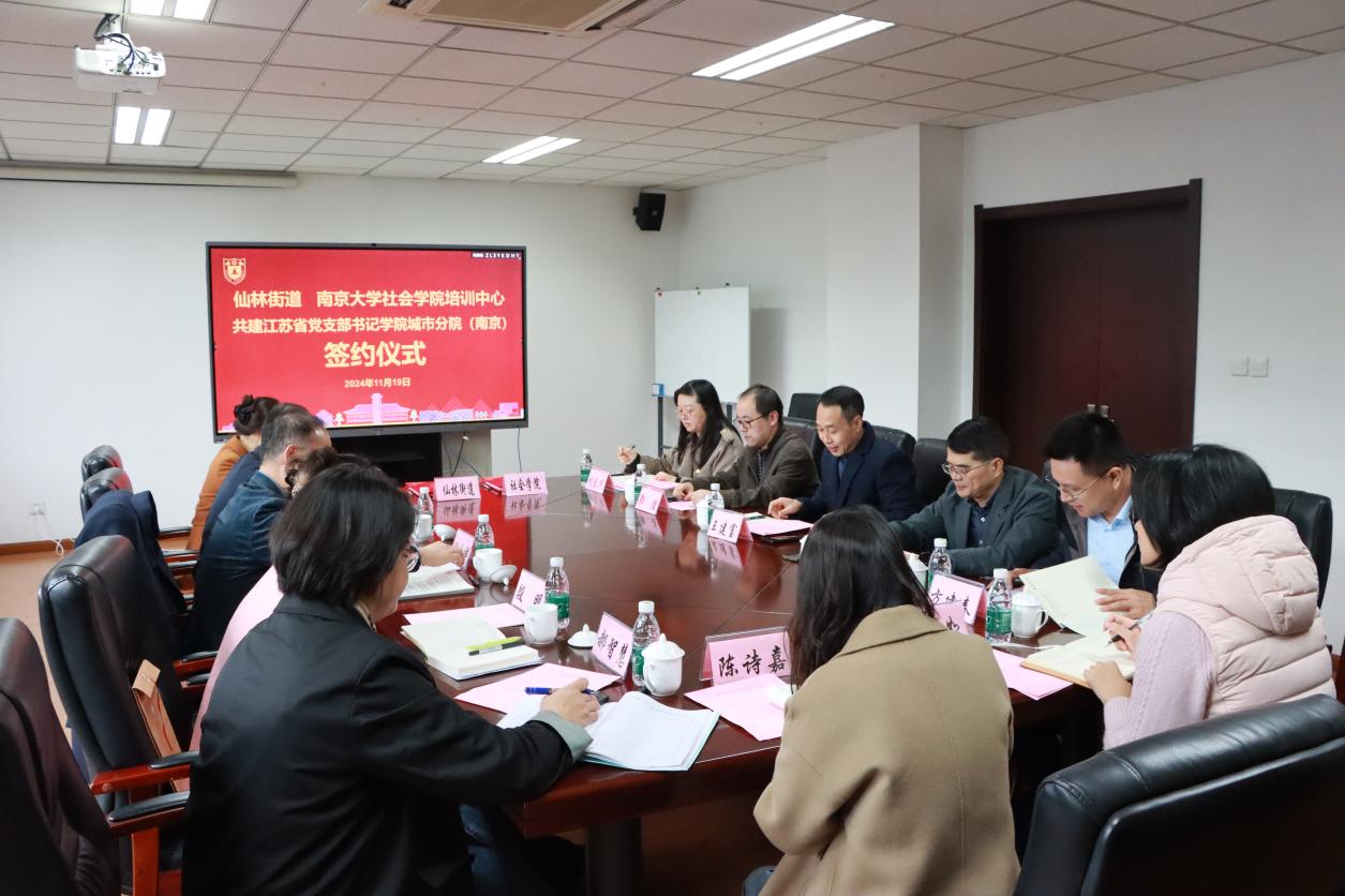 11月19日下午,成人网 与仙林街道共建江苏省党支部书记学院城市分院(南京)(以下简称“城市分院”)签约仪式在成人网 仙林校区举行。成人网 党委书记王建富、院长吴愈晓、办公室主任郭浩、培训中心主任方建春、培训中心副主任胡春华参加签约仪式。仙林街道党工委书记欧立祥、党工委副书记王杨、纪工委书记殷明、江苏省党支部书记学院城市分院(南京)教育发展中心主任梁丽、仙林党群服务中心主任郝智慧等出席活动。