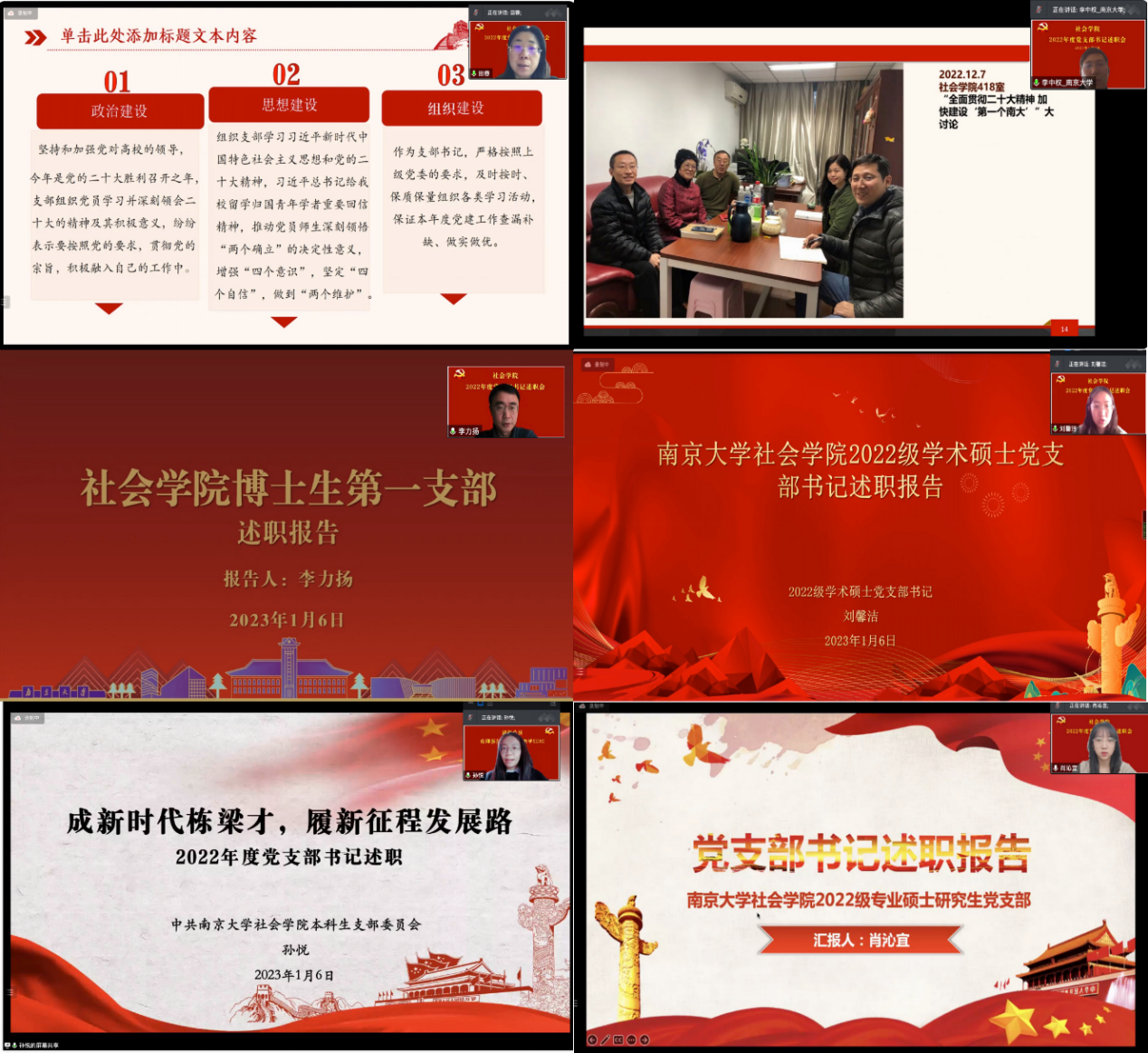 社会学系教师党支部、心理学系教师党支部和社会工作与政策系党支部注重党业结合,切实把握自身学科与党的发展路线的关系,紧跟党的重要会议精神指引,着力加强组织建设。行政教工党支部着力增强支部政治功能,强化党建服务“第一个南大”建设工作理念,在理论学习教育过程中不断探索党组织生活质量提升的新路径。博士生党支部努力做好活动创新工作,以活动促提升,逐步增强支部凝聚力、创造力。硕士生党支部突出打造服务型学生党支部,理论学习与实践创新并重,在青年学生中间起到了很好的先锋模范作用。本科生支部贯通党组织、团组织、班集体协同育人机制,突出党员辐射带头作用。