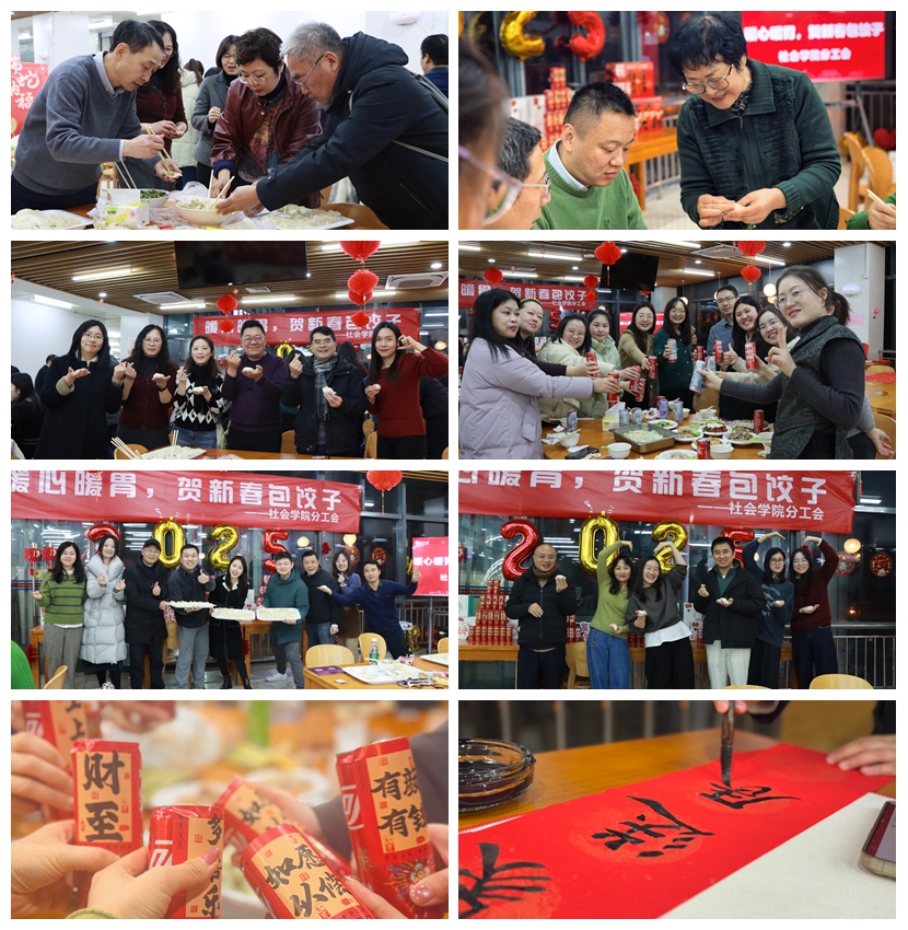 院分工会举行“暖心暖胃,贺新春包饺子”活动,现场气氛热烈。老师们围坐一起包饺子充满欢声笑语,举杯共庆过去一年的成长与收获,高歌一曲表达对学院的美好祝福,提笔写下新年的愿望和期待。