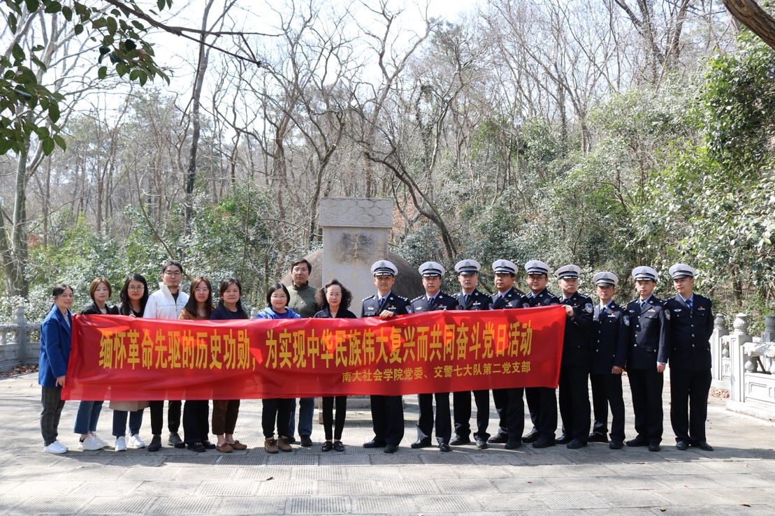 教工党支部联合栖霞区交警大队第七大队第二党支部,于3月9日共同来到范鸿仙墓,开展了以“缅怀革命先驱的历史功勋,为实现中华民族伟大复兴而共同奋斗”为主题的党日活动,学习以范鸿仙为代表的革命先驱的伟大事迹,发扬崇高品德,弘扬革命精神。