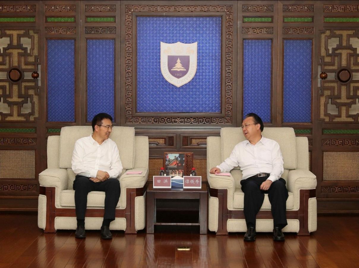 7月2日下午,成人网 党委书记、中国科学院院士谭铁牛在仙林校区会见江苏省委社会工作部部长、省委“两新”工委书记田洪一行。双方就进一步深化合作开展座谈交流。成人网 党委副书记、学校办公室主任陈云松主持座谈会。