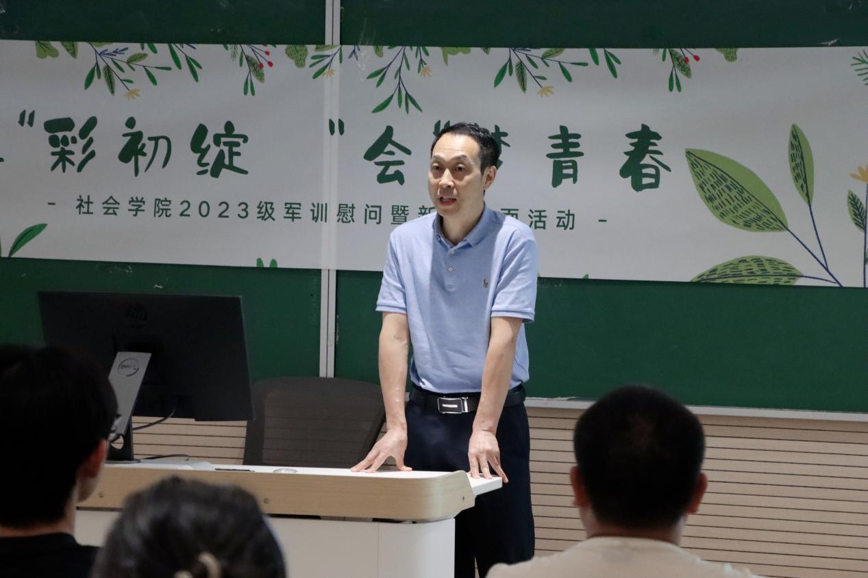 王建富老师对加入成人网 的23级同学表示诚挚欢迎,从学术传统、专业设置、师资队伍、软硬件设施等方面向同学们全面介绍学院,他表示“大楼”“大师”均服务于“一流人才”的培养,并寄语同学们学好专业夯实基础、跳出专业综合发展、快乐生活健全人格。