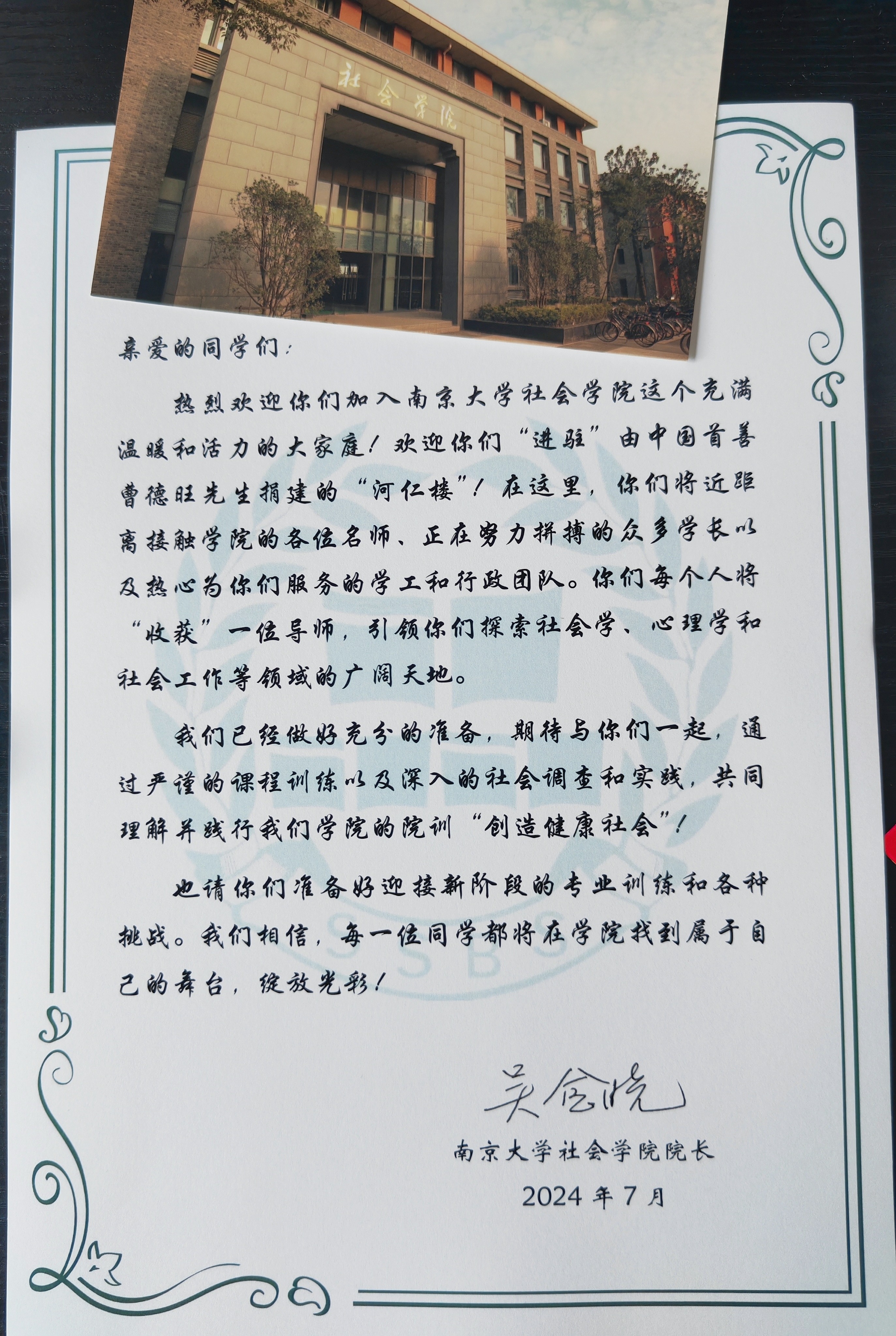 学院为每位同学都贴心准备了小礼物,并送上由成人网 院长吴愈晓老师撰写的欢迎信及学院明信片。“社”彩初绽、“会”梦青春,相信每一位加入社院大家庭的同学都将在学院找到属于自己的舞台,绽放出独一无二的光彩!