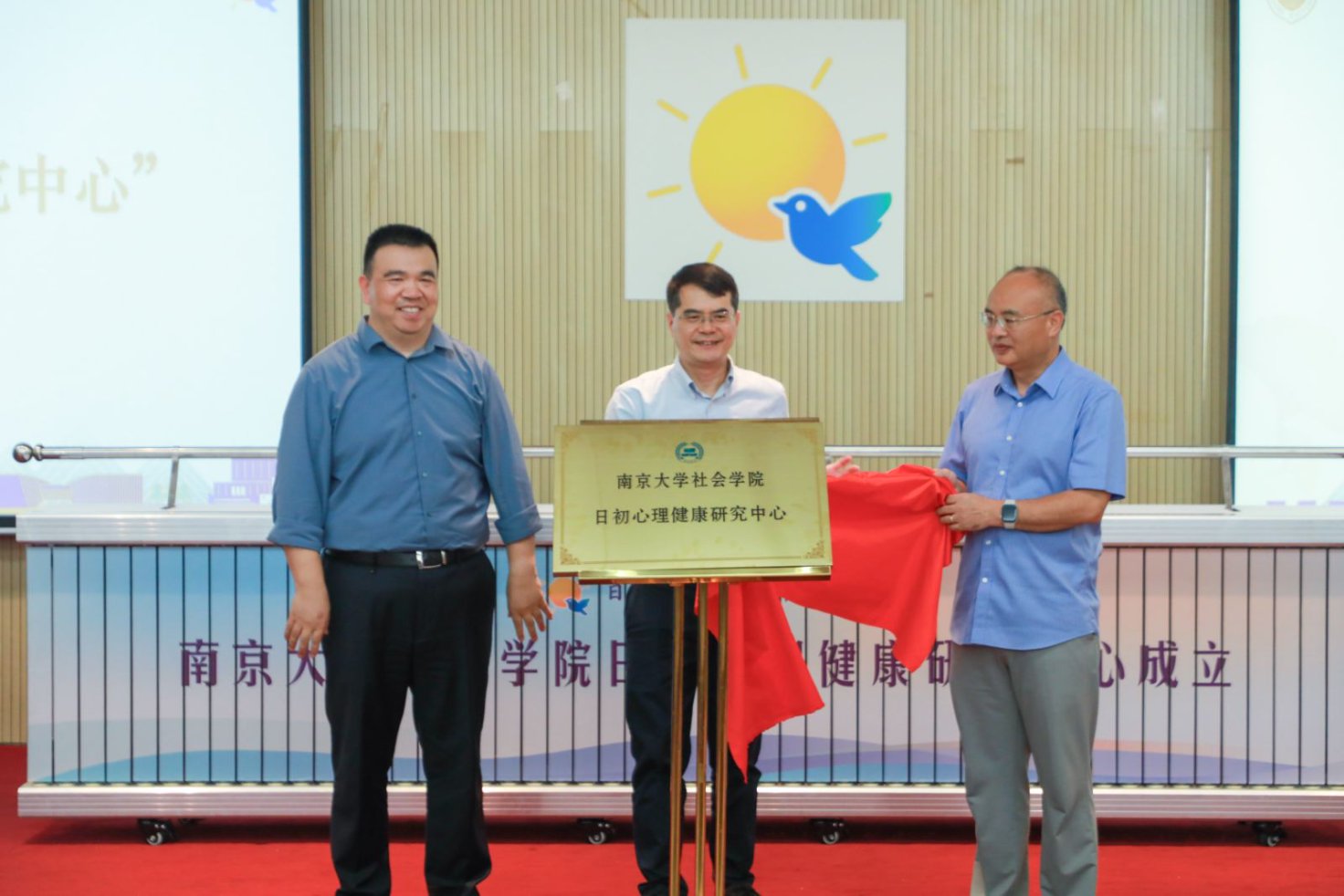 吴愈晓院长、李鸣教授与张海滨先生共同为“日初心理健康研究中心”揭牌,宣告中心正式成立。